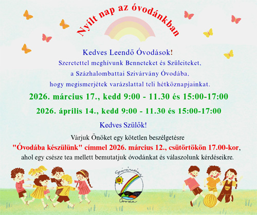 Tájékoztatom Önöket, hogy Százhalombatta Város Önkormányzatának Képviselő- testülete Műszaki, Oktatási és Kulturális Bizottságának 168/2025 (XI.26) határozata szerint, óvodánk 2026. július 27.- 2026. augusztus 21-ig zárva tart. Ezen időszak alatt, írásos kérelem alapján, a Pitypangos Óvoda fogadja a gyermekeket. Aki ebben a négy hétben igényel gyermeke számára óvodai ellátást, kérem, szíveskedjen felém írásban jelezni ezt, legkésőbb 2026. június 15-ig, megnevezve az igényelt időszakot.